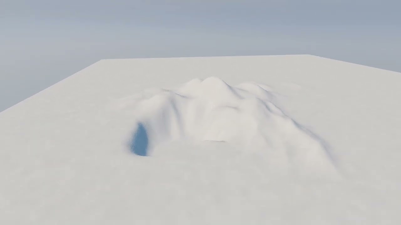 This was a fun little diversion. Using the compute shader brush, we carved the path of a moving sphere into the snow. As you can imagine, it would be easy to let the sphere grow continuously as it moves through the snow, slowly turning into a part of a snowman.