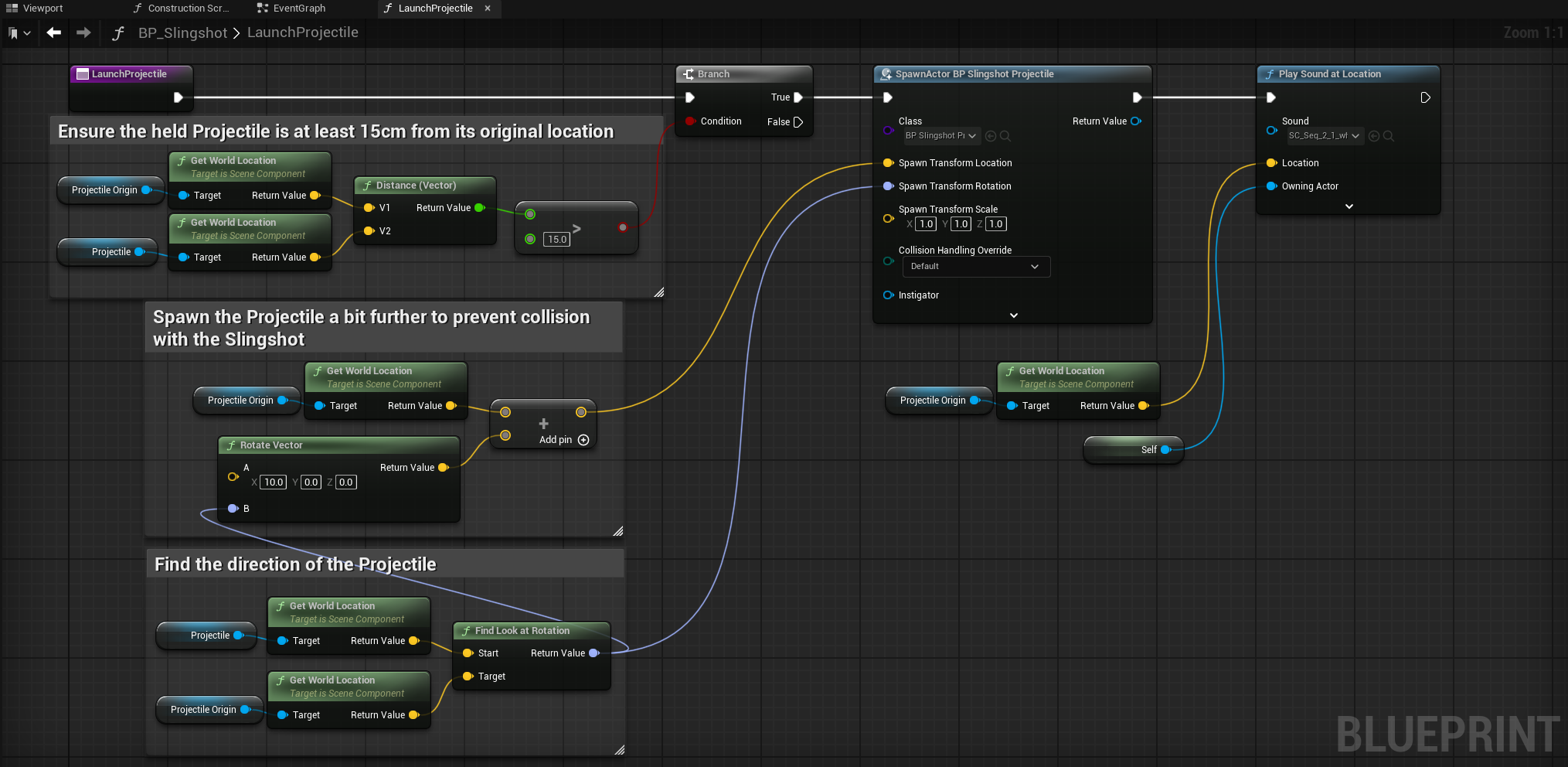 BP_Projectileand set its orientation according to the launch direction - We play a 'whoosh' sound to indicate a successful launch