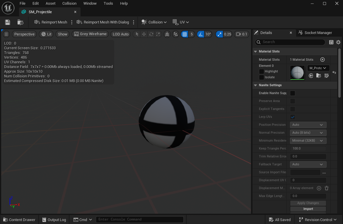 For the Projectile mesh we use a simple Sphere with the pivot in the center.