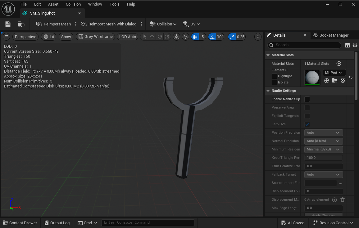 - Projectile mesh - a sphere mesh that can be grabbed when the Slingshot is being held by the other hand