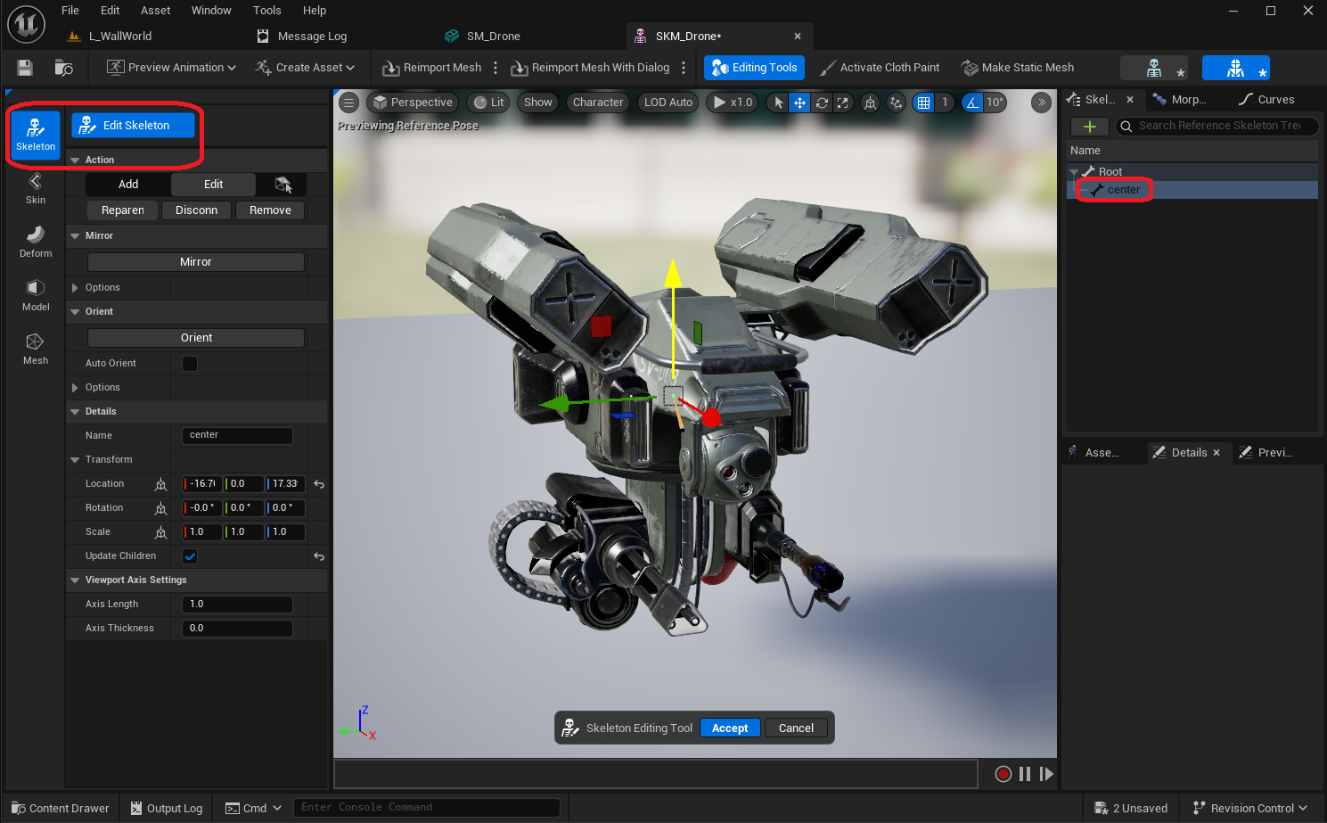 Now that we have a skeletal mesh, let's setup a custom skeleton with some bones and sockets for it, which we can later use to create procedural animations.